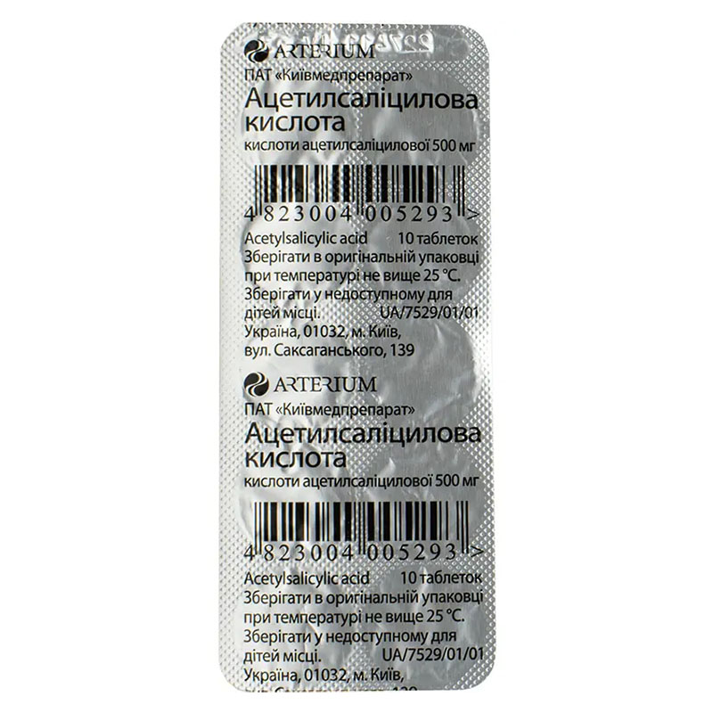 Ацетилсалициловая кислота таблетки по 500 мг 10 шт. - Артериум