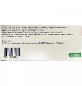 1 таблетка, вкрита плівковою оболонкою, містить 30 мг, 60 мг або 80 мг аторвастатину у вигляді аторвастатину кальцію;
