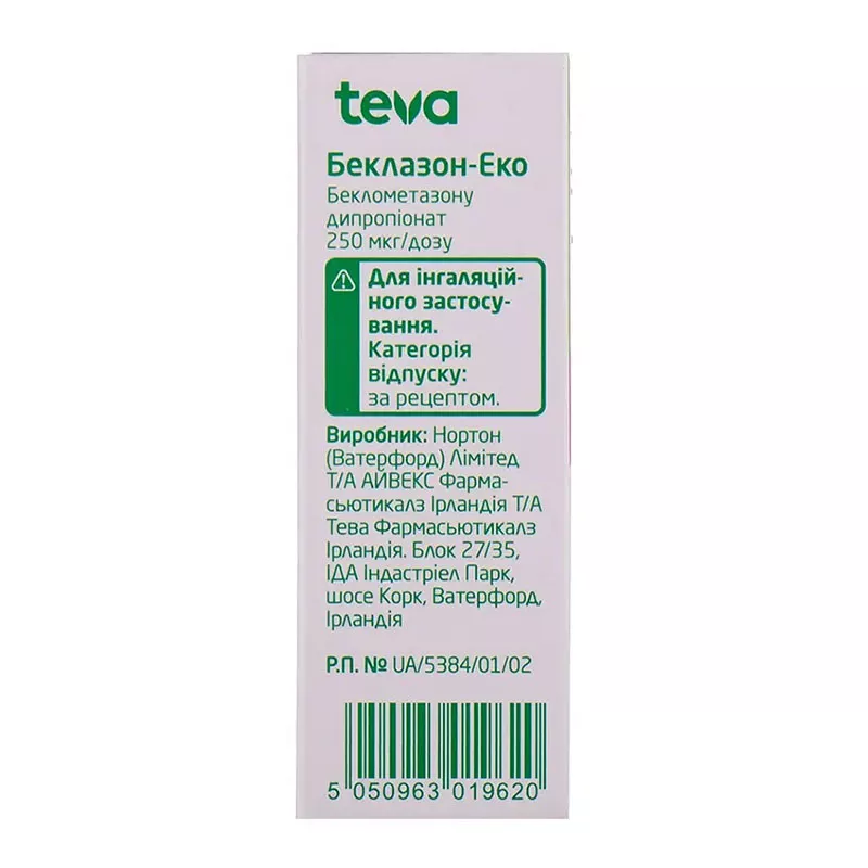 1 інгаляційна доза містить 250 мкг беклометазону дипропіонату;