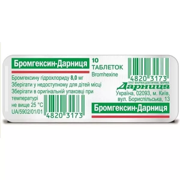 1 таблетка содержит бромгексина гидрохлорида 8 мг;