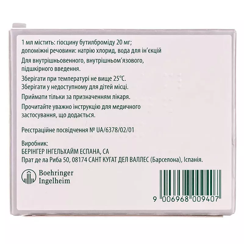 1 мл содержит гиосцина бутилбромида 20 мг;