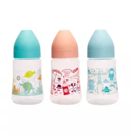 *Бутылочка Lindo с широким горлом силиконовой соской и антиколиковым регулятором 225 мл