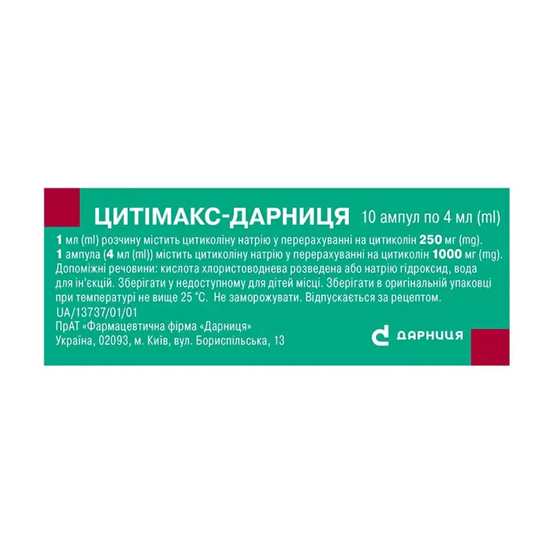 На сайте online-apteka.com.ua можно купить Цитимакс-Дарница раствор для инъекций 250 мг/мл в ампулах по 4 мл 10 шт. с доставкой по всей Украине.