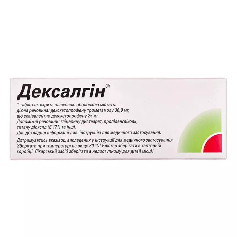 Дексалгин (Berlin-Chemie AG, Италия) заслуженно занимает лидирующее место среди анальгетиков. Он относится к группе рецептурных неопиоидных обезболивающих препаратов и имеет высокий профиль безопасности, быстро снимает болевой синдром.