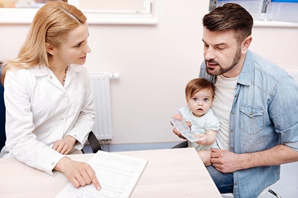- Обязательно покажите ребенка педиатру перед процедурой. Врач осмотрит малыша, померяет температуру, послушает легкие, проверит горло, кожу и лимфоузлы. Если все хорошо, можно делать вакцинацию – это обязательное правило для полной безопасности.