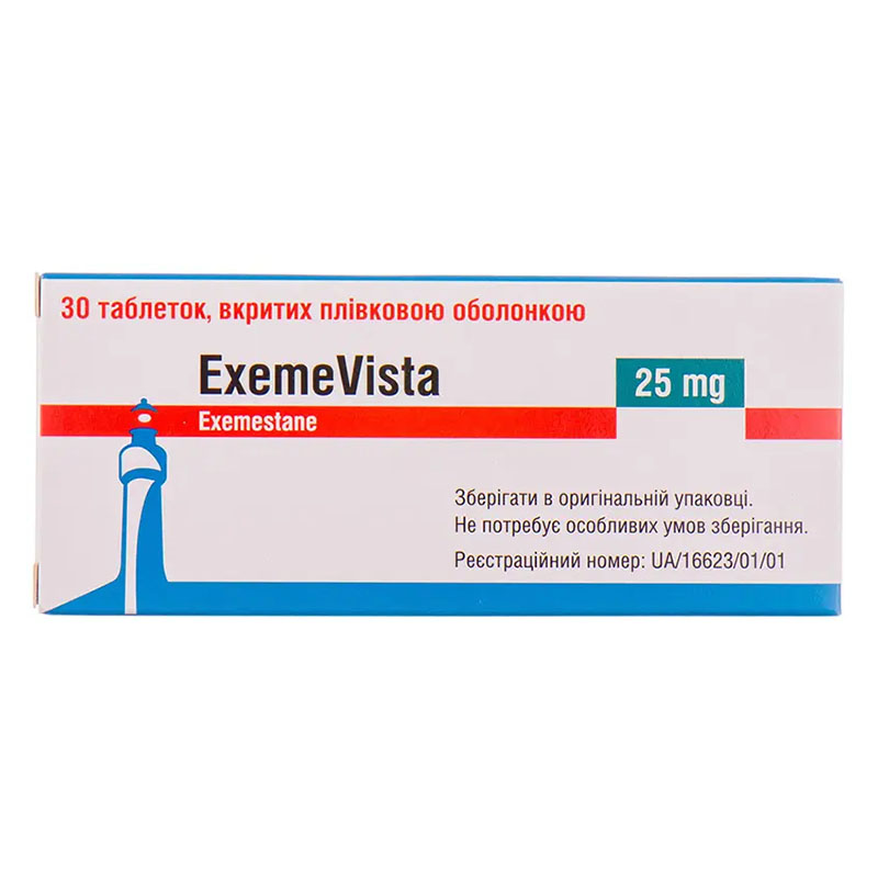 1 таблетка, покрытая пленочной оболочкой, содержит экземестана 25 мг;