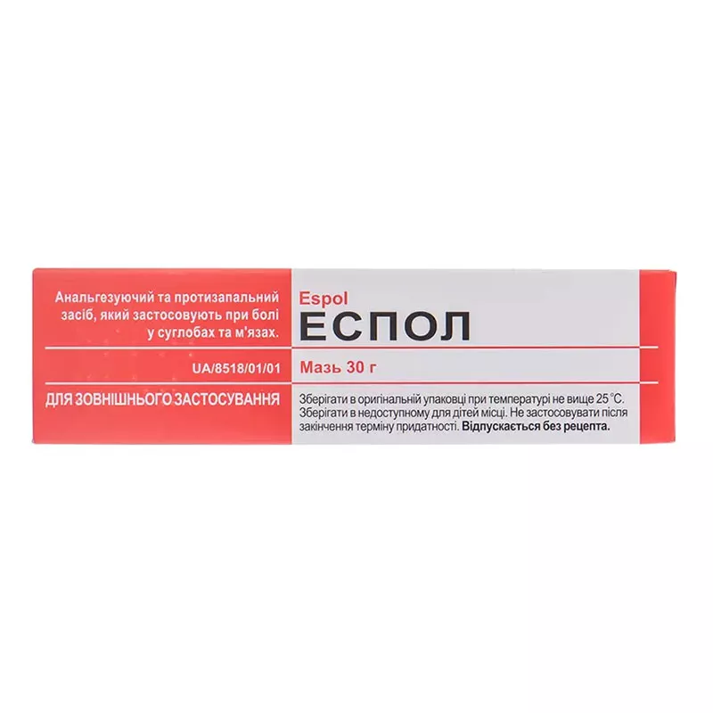 Мені подобається мазь Еспол за те, що вона добре допомагає усунути біль у коліні, швидко знімає запалення, тим самим дає змогу краще рухатися. А ще гарно вбирається, немає специфічного запаху та коштує доступно для пенсіонера.