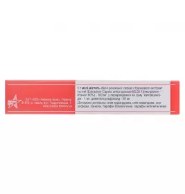 вспомогательные вещества: диметилсульфоксид, эвкалиптовое масло, лавандовое масло, хлороформ, ланолин, парафин белый мягкий.
