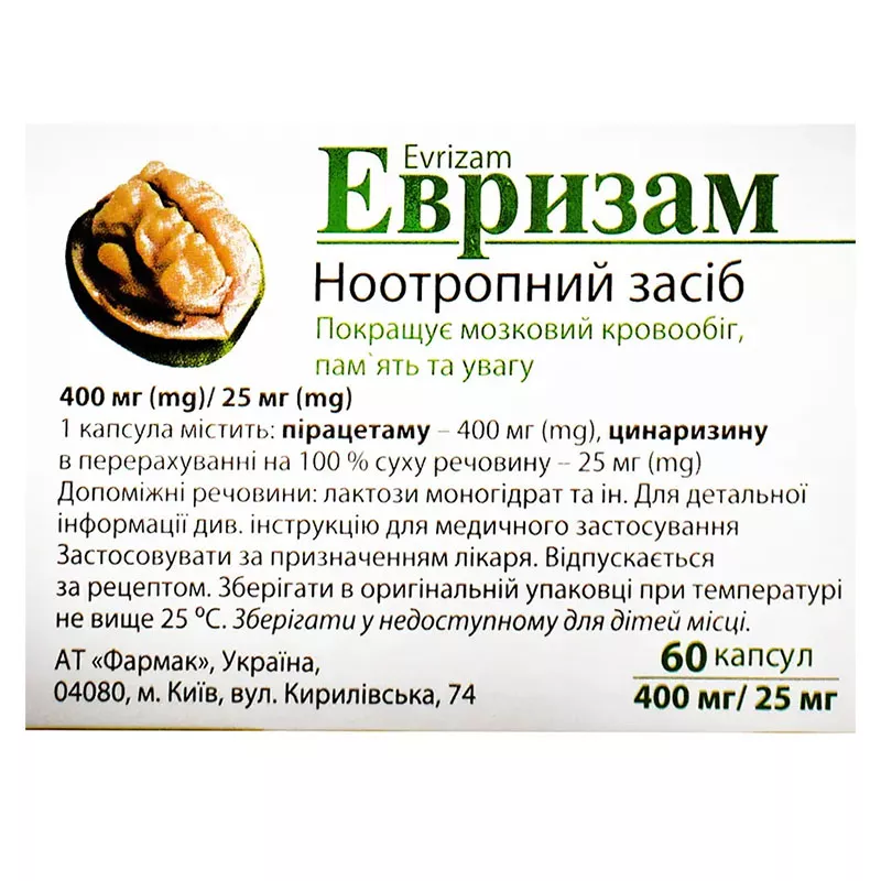 Лікар при порушенні мозкового кровообігу виписав Евризам у комплексній терапії з іншим лікарським засобом. Після двохтижневого прийому цих капсул я почала почуватися помітно краще, покращала пам'ять, увага, налагодився настрій. Тож раджу 100%!