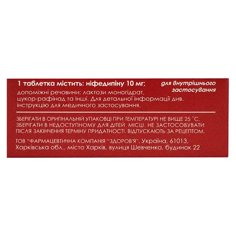 1 таблетка містить ніфедипіну 10 мг;