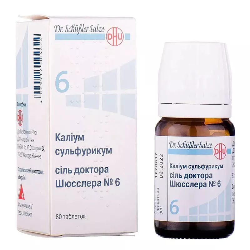 Какое действующее вещество товара - Калиум сульфурикум соль доктора Шюсслера №6 таблетки 80 шт. во флаконе?