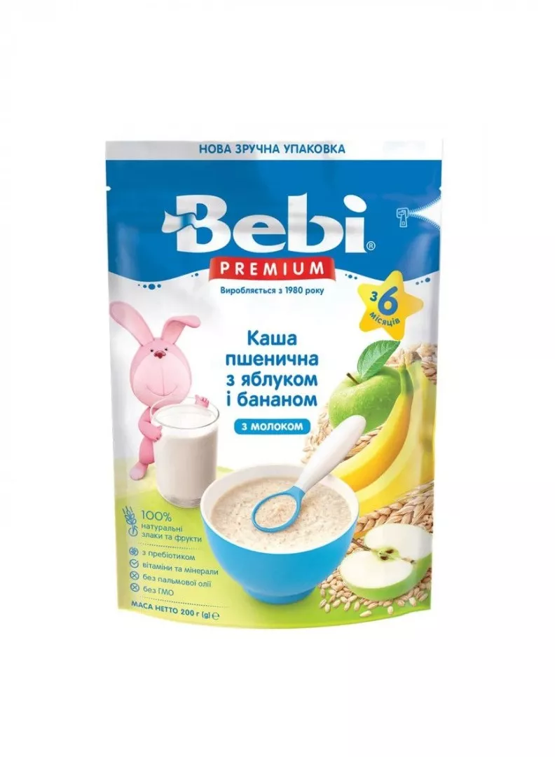 Каша Bebi Премиум молочная Пшеничная с ябл. и бан. с 6 мес 200г