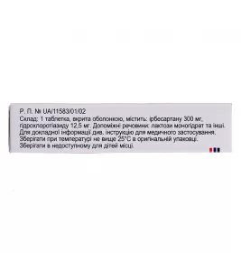 1 таблетка, покрытая оболочкой, содержит ирбесартана 150 мг и гидрохлоротиазида 12,5 мг или ирбесартана 300 мг и гидрохлоротиазида 12,5 мг;