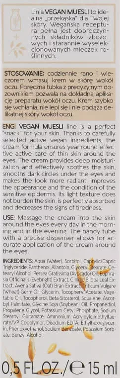 *Крем Bielenda Vegan Muesli для кожи вокруг глаз овёс+пшеница 15мл