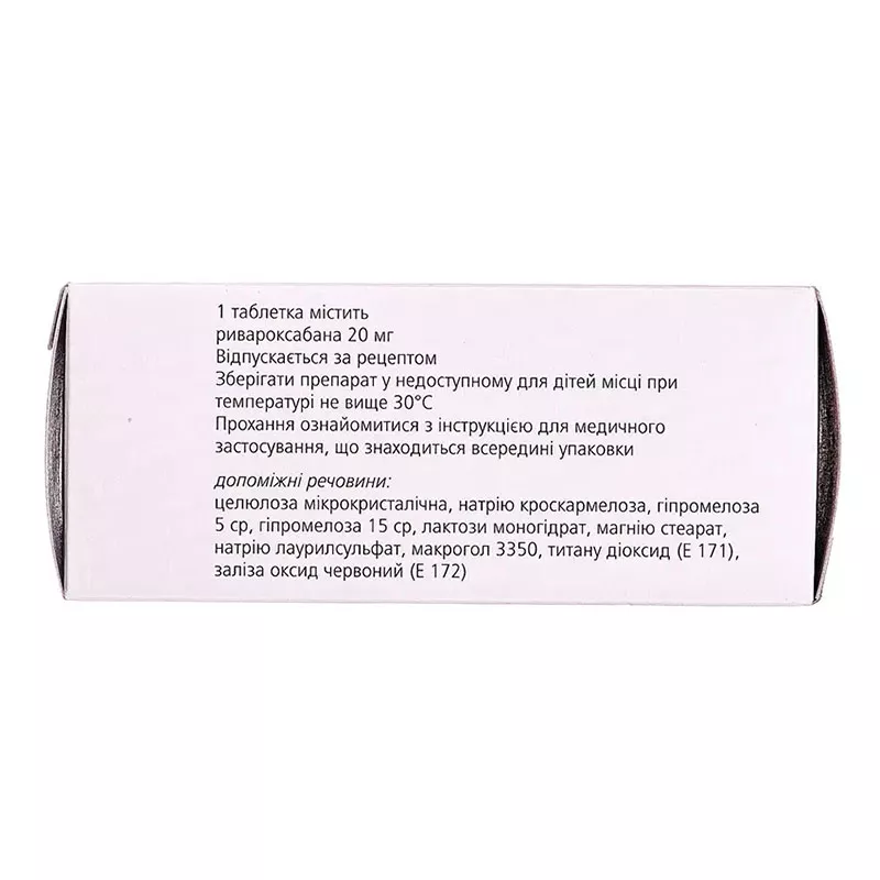 1 таблетка, покрытая пленочной оболочкой, содержит 20 мг ривароксабана;