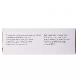 - Особенности Ламотрин 100 таблетки по 100 мг №10 Производитель Фарма Старт, ООО, г.Киев, Украина Международное название Lamotrigine Код АТС NСредства, действующие на нервную систему N03Противоэпилептические средства N03AПротивоэпилептические средства N03AXПрочие противоэпилептические средства N03AX09Ламотригин Фармакотерапевтическая группа Противоэпилептические средства. Ламотриджин. Регистрация № UA/2112/01/02 от 06.10.2014. Приказ № 705 от 06.10.2014 Склад діюча речовина: ламотриджин; 1 таблетка містить ламотриджину 25 мг або 50 мг, або 100 мг; допоміжні речовини: целюлоза мікрокристалічна, кремнію діоксид колоїдний безводний, повідон, натрію крохмальгліколят (тип А), лактоза моногідрат, магнію стеарат. Лікарська форма Таблетки. основні фізико-хімічні властивості: таблетки білого або майже білого кольору, круглої форми, з двоопуклою поверхнею, з рискою (Ламотрин 50 та Ламотрин 100), без риски (Ламотрин 25). Фармакотерапевтична група Протиепілептичні засоби. Ламотриджин. Код АТХ N03A X09. Фармакологічні властивості Фармакодинаміка. Ламотриджин – похідне фенілтриазину – протиепілептичний засіб, механізм дії якого пов’язаний з блокадою потенціалзалежних натрієвих каналів пресинаптичних мембран нейронів у фазі повільної інактивації та пригніченням надлишкового вивільнення збуджуючих нейротрансмітерів, насамперед глутамату (амінокислоти, яка відіграє значну роль у розвитку епілептичного нападу). Фармакокінетика. Після прийому внутрішньо препарат швидко та повністю абсорбується у травному тракті. Максимальна концентрація у плазмі крові досягається приблизно через 2,5 години. Прийом їжі подовжує цей час, але не впливає на ступінь абсорбції. Зв’язування з білками плазми становить 55 \%. Ламотриджин зазнає інтенсивного метаболізму, основним метаболітом є N-глюкуронід. У дорослих період напіввиведення становить 29 годин. Ламотриджин має лінійний фармакологічний профіль. У дітей період напіввиведення менший, ніж у дорослих. Виводиться, головним чином, у вигляді метаболітів та частково у незміненому вигляді, переважно з сечею. Спеціальні групи пацієнтів. Діти. Кліренс залежно від маси тіла у дітей вищий, ніж у дорослих, з найвищими показниками у дітей віком до 5 років. Період напіввиведення ламотриджину у дітей зазвичай коротший, ніж у дорослих, із середнім значенням приблизно 7 годин, при одночасному застосуванні з такими індукторами ензимів як карбамазепін та фенітоїн, та підвищенням середнього значення до періоду від 45 до 50 годин при одночасному застосуванні винятково з вальпроатом. Пацієнти літнього віку. Повідомлялось, що результати фармакокінетичного аналізу у групах пацієнтів, який включав як пацієнтів літнього віку, так і молодих пацієнтів з епілепсією, які приймали участь в одному дослідженні, виявили, що кліренс ламотриджину не змінився до клінічно значущого показника. Є дані, що після одноразових доз явний кліренс зменшився на 12 \% з 35 мл/хв/кг у віці 20 років до 31 мл/хв/кг у віці 70 років. Зниження після 48 тижнів лікування становило 10 \% від 41 до 37 мл/хв між молодою та літньою групами. Повідомлялось, що фармакокінетика ламотриджину була вивчена у пацієнтів літнього віку, яким була призначена одноразова доза 150 мг. Також повідомлялося, що середнє значення кліренсу у пацієнтів літнього віку (0,39 мл/хв/кг) знаходиться між середнім значенням кліренсу (від 0,31 д