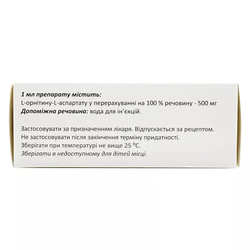 1 мл препарата содержит L-орнитина-L-аспартата в пересчете на 100% вещество 500 мг