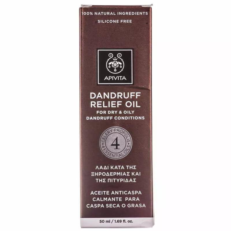 Масло Apivita с сельдереем, прополисом и 4-мя эфирными маслами помогает эффективно бороться с перхотью.