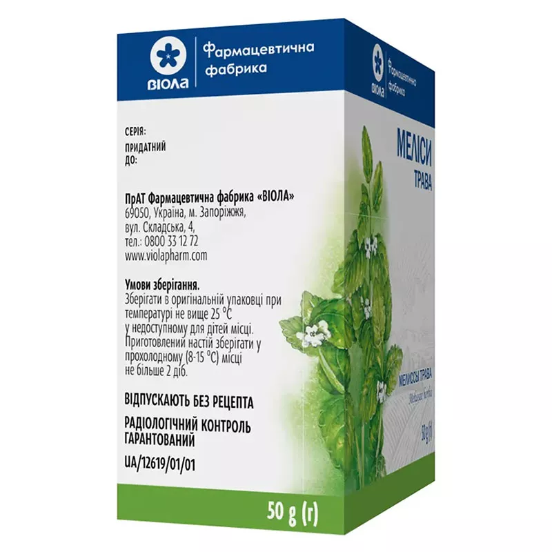 1 пачка содержит мелиссы травы (Melissae herba) - 50 г;