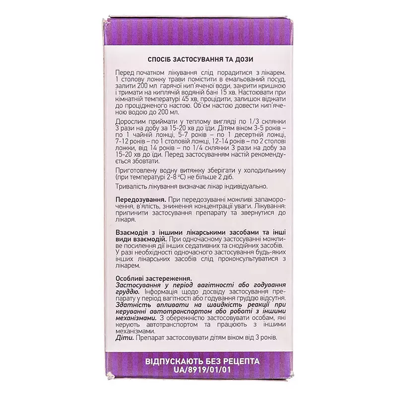 Перед початком лікування слід порадитися з лікарем.¶¶1 столову ложку трави помістити в емальований посуд, залити 200 мл гарячої кип’яченої води, закрити кришкою і тримати на киплячій водяній бані 15 хв. Настоювати при кімнатній температурі 45 хв, процідити, залишок віджати до процідженого настою. Об’єм настою довести кип’яченою водою до 200 мл. Дорослим приймати у теплому вигляді по ⅓ склянки 3 рази на добу за 15–20 хв до їди. Дітям віком 3–5 років – по 1 чайній ложці, 5–7 років – по 1 десертній ложці, 7–12 років – по 1 столовій ложці, 12–14 років – по 2 столові ложки, від 14 років – по ¼ склянки 3 рази на добу за 15–20 хв до їди. Перед застосуванням настій рекомендується збовтати.¶¶2 фільтр-пакети помістити у скляний або емальований посуд, залити 200 мл окропу, закрити і настоювати 15 хв. Дорослим приймати у теплому вигляді – по ½ склянки 3–4 рази на добу за 15–20 хв до їди. Дітям віком 3–5 років – по 1 десертній ложці, 5–7 років – по 1 столовій ложці, 7–12 років – по 2 столові ложки, 12–14 років – по ¼ склянки, від 14 років – по ⅓ склянки 3 рази на день за 15–20 хв до їди.¶¶Приготовлену водну витяжку зберігати у холодильнику (при температурі 2–8 оС) не більше 2 діб.¶¶Тривалість лікування визначає лікар індивідуально.¶¶Діти. Препарат застосовувати дітям віком від 3 років.