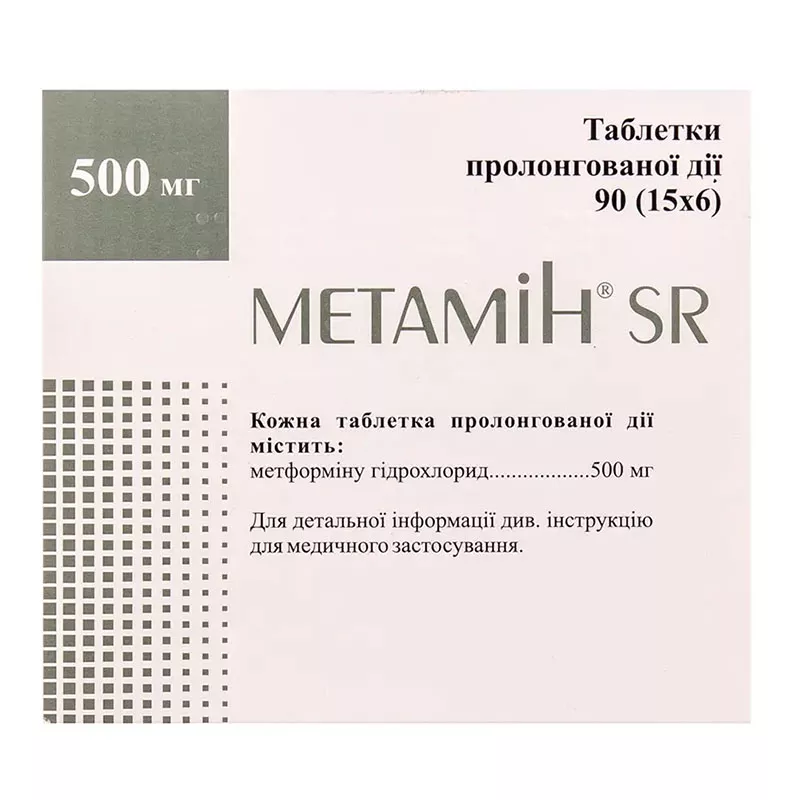 Метамин SR таблетки по 500 мг 90 шт. (15х6)
