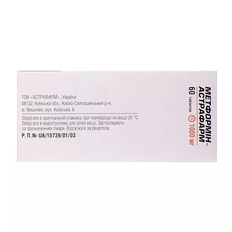 Метформин-Астрафарм таблетки по 1000 мг 60 шт. (10х6)