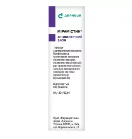 Мирамистин – антисептический препарат широкого спектра терапевтической активности. Выпускается украинской фармацевтической компанией «Дарница». Производится в форме раствора для местного применения. Принадлежит к безрецептурным лекарственным средствам.