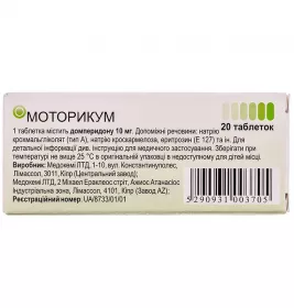 Моторикум таблетки по 10 мг 20 шт. (10х2)