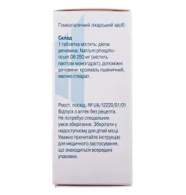 1 таблетка содержит Natrium phosphoricum D6 250 мг (содержит лактозы моногидрат);