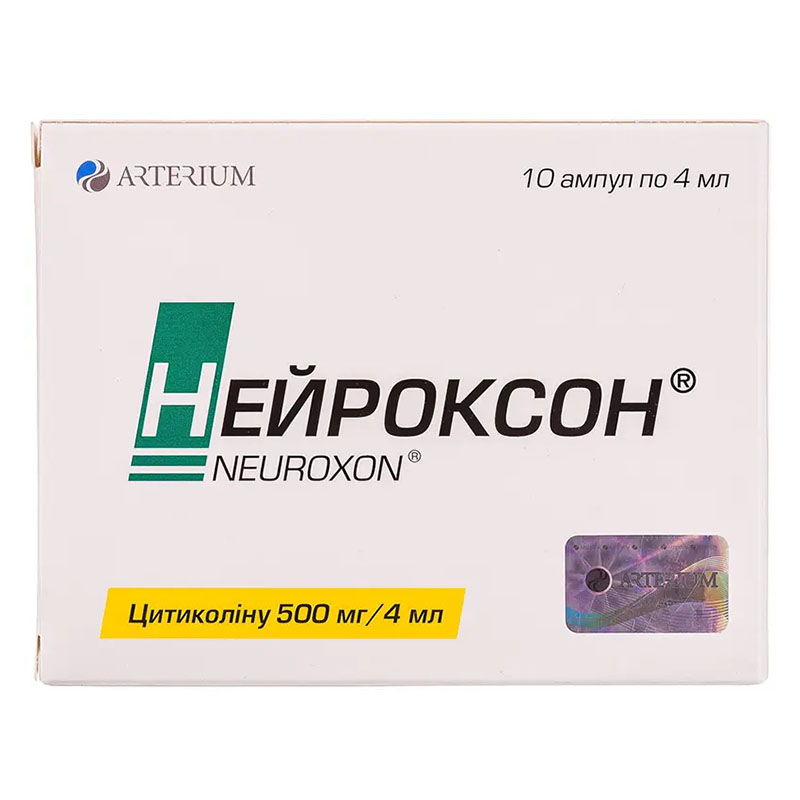 Действующие вещества у препарата "Нейроксон раствор для инъекций 500 мг/4 мл в ампулах по 4 мл 10 шт. (5х2)" являются Цитиколин.