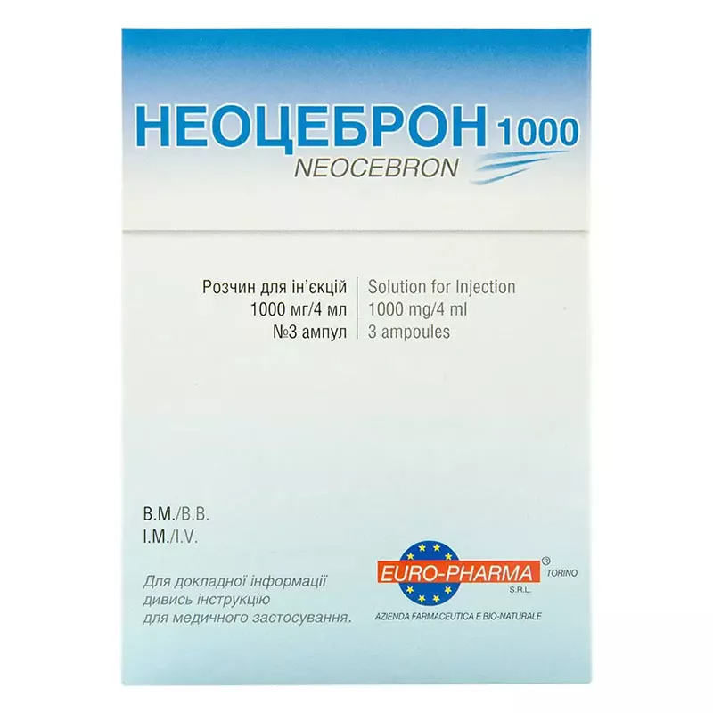 Неоцеброн раствор для инъекций 1000 мг/4 мл в ампулах по 4 мл 3 шт.