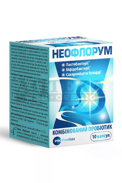 Неофлорум (Lallemand Health Solutions Inc., Канада) – комплекс пробиотиков и пребиотиков для комфортного пищеварения. Содержит лакто- и бифидобактерии, которые необходимы для поддержания здоровья ЖКТ. Продукт не является лекарственным средством. Он рекомендовано к употреблению в качестве пищевой добавки.