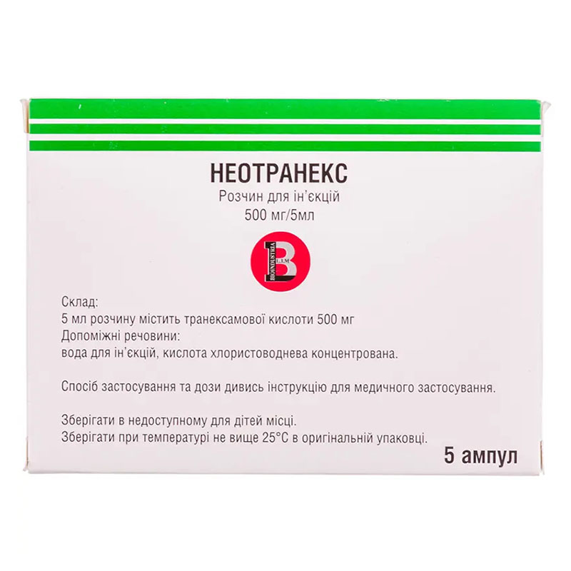 Неотранекс раствор для инъекций по 500 мг/5 мл в ампулах 5 шт.