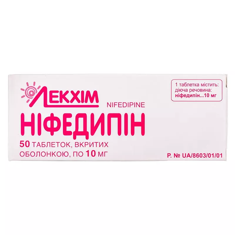 Фармакодинаміка. Селективний блокатор кальцієвих каналів, похідне дигідропіридину. Гальмує надходження кальцію у кардіоміоцити та клітини гладкої мускулатури судин. Має антиангінальний та антигіпертензивний ефекти. Знижує тонус гладкої мускулатури судин. Розширює коронарні та периферичні артерії, знижує загальний периферичний судинний опір, артеріальний тиск та незначною мірою скоротливість міокарда, зменшує післянавантаження та потребу міокарда в кисні. Покращує коронарний кровообіг. Не пригнічує провідність міокарда. При тривалому застосуванні ніфедипін може запобігати утворенню нових атеросклеротичних бляшок у коронарних судинах. На початку лікування ніфедипіном може виникати скороминуща рефлекторна тахікардія і збільшення серцевого викиду, які не компенсують вазодилатацію, спричинену препаратом. Ніфедипін посилює виведення з організму натрію та води. При синдромі Рейно препарат може запобігати або послаблювати спазм судин кінцівок.
