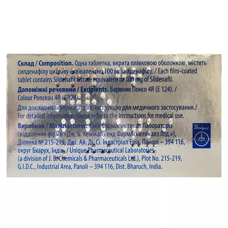 Или 1 таблетка содержит силденафила цитрата эквивалентно 100 мг силденафила;