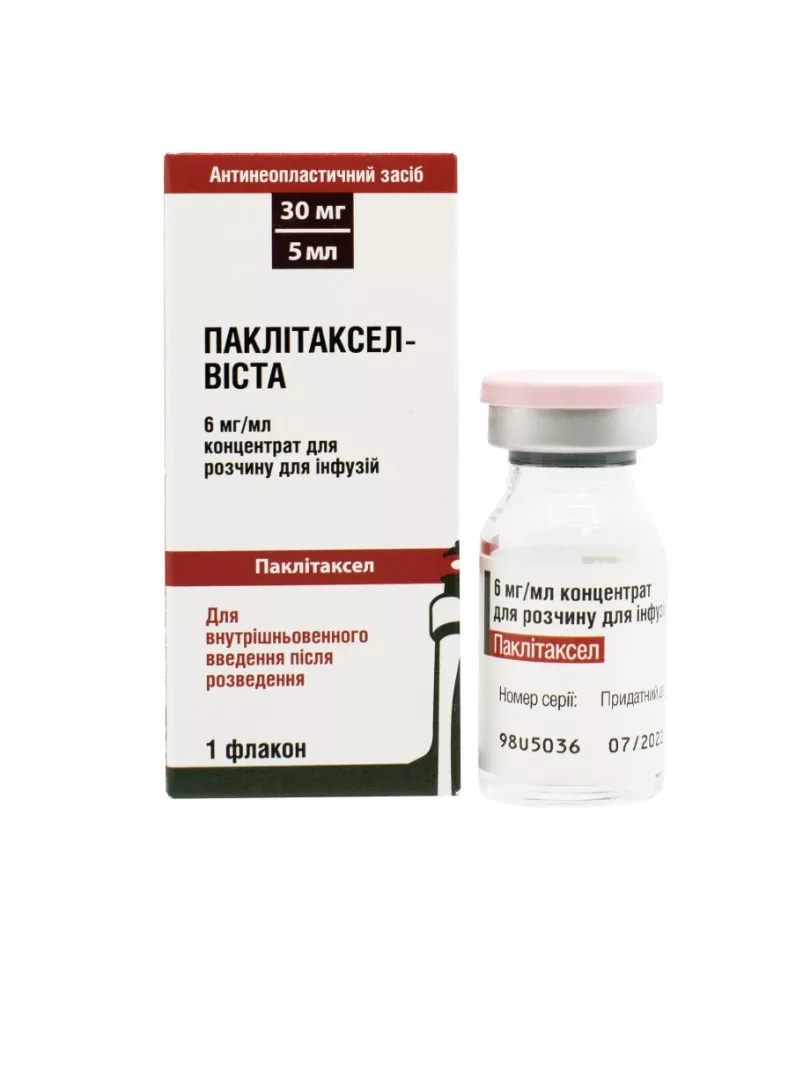 На сайте online-apteka.com.ua можно купить Паклитаксел-Виста концентрат 6 мг/мл 5 мл (3 мг) во флаконе 1 шт. с доставкой по всей Украине.