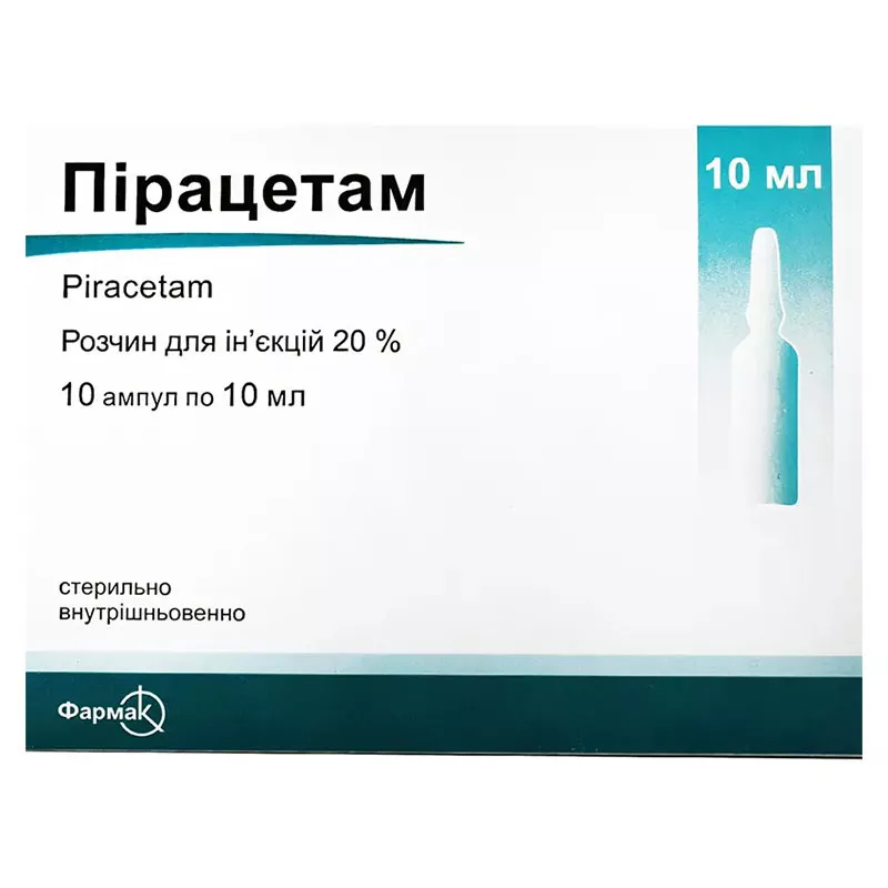 Пирацетам раствор для инъекций 200 мг/мл в ампуле по 5 мл 10 шт. - Фармак