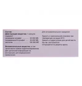 Действующие вещества: neomycin sulfate, polymyxin B sulfate, nystatin;