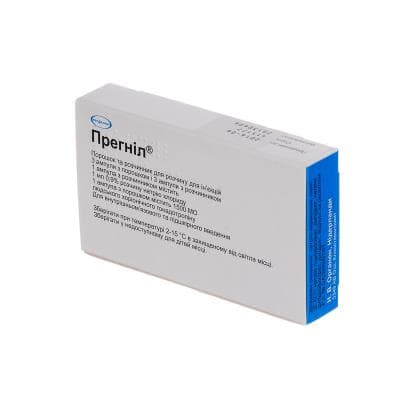ПрегнілÒ, порошок для розчину для ін’єкцій по 1500 МО: 3 ампули з порошком та 3 ампули з 1 мл розчинника (розчин натрію хлориду 0,9 %) в лотку; по 1 лотку в картонній упаковці.