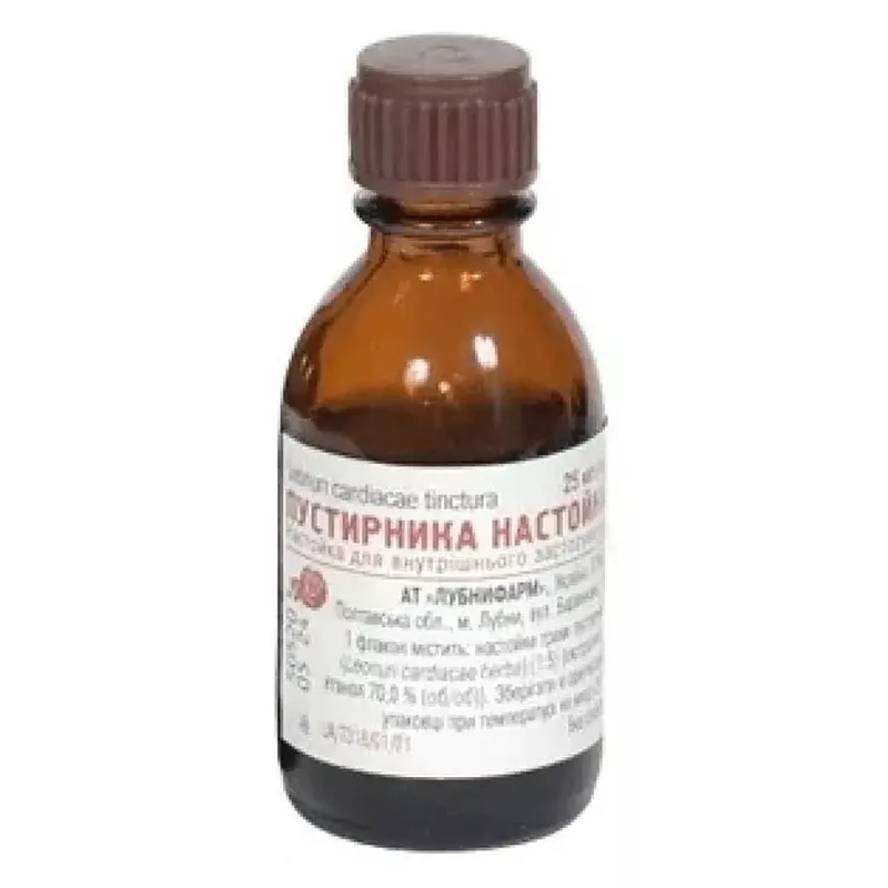 Действующее вещество: 1 флакон содержит настойки травы пустырника (Leonuri cardiacae herba) (1:5) (экстрагент - этанол 70% (об/об)) 25 мл.