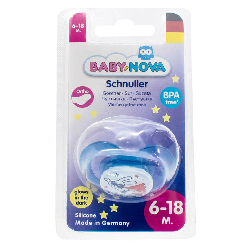На сайте online-apteka.com.ua можно купить Пустышка Baby-nova 24242-1 сил.ортод.Ночная р.2 голубая 1шт с доставкой по всей Украине.