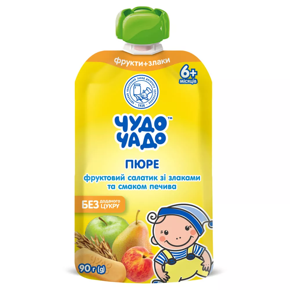 Пюре Чудо-чадо фруктовый салатик с печеньем и злаками без сахара с 6-ти мес. 90 г (пауч)