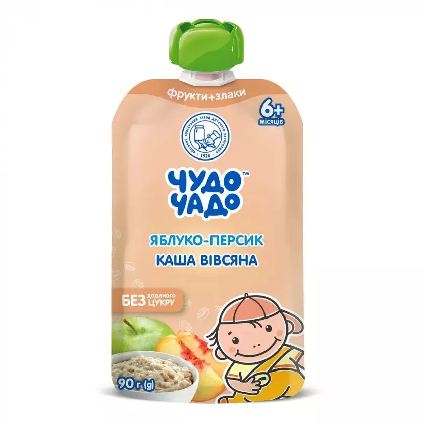 *Пюре Чудо-Чадо яблоко, персик, каша овсяная 90г (пауч)