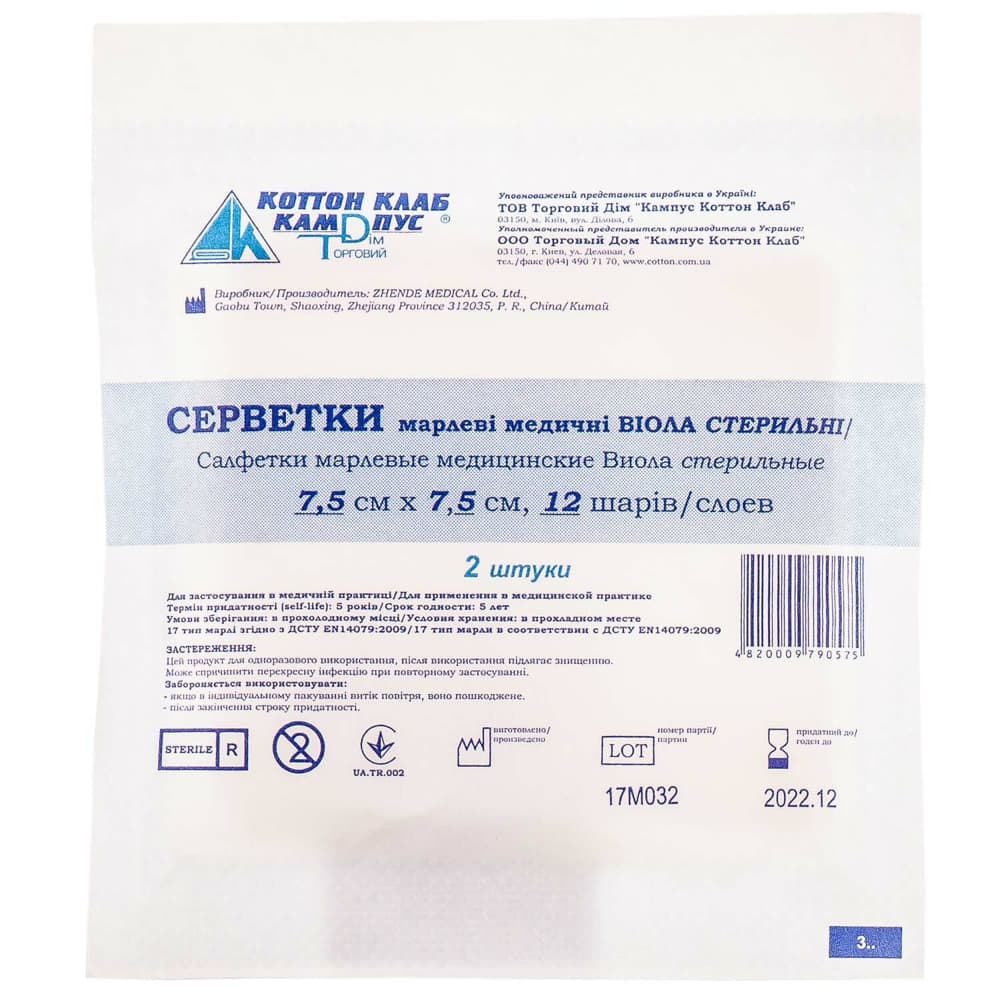 *Салфетка марлевая Виола стер. 7,5 х 7,5 см 12-сл. №2