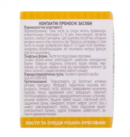 1 пачка содержит сенны листьев и плодов (Sennae folia cum fructus) 100 г.
