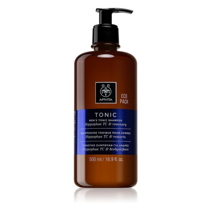Тонізуючий шампунь проти облисіння Apivita для чоловіків з Hippophae TC (Hippophae) і розмарином.