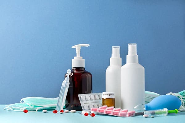 От заложенности носа в аптечке необходимо иметь сосудосуживающие капли. Они помогут облегчить носовое дыхание и спокойно спать ночью. Капли в нос должны быть индивидуальными, поэтому лучше, чтобы в аптечке их было несколько упаковок.