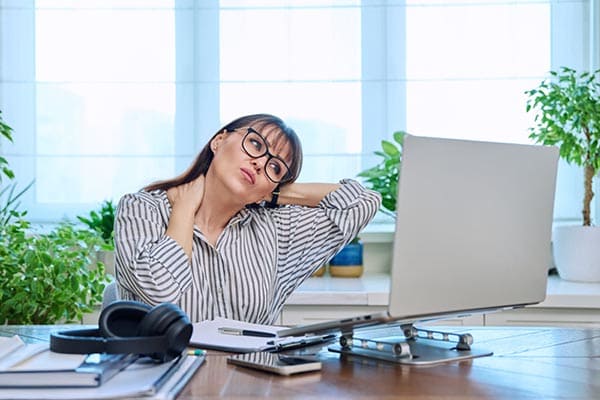 Тривала робота за комп'ютером призводить до перевтоми очей та напруги м'язів шиї, що може викликати головний біль. Рекомендується робити регулярні перерви, змінювати положення тіла та стежити за поставою. Також варто звернути увагу на освітлення робочого місця, щоб мінімізувати напругу та втому.