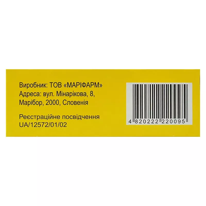 Другие составляющие: крахмал кукурузный, магния стеарат, кремния диоксид коллоидный безводный.