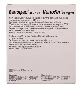 Венофер раствор 20 мг/мл в ампулах по 5 мл 5 шт.